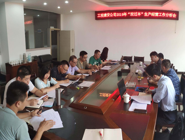 6月24日下午,工投建安公司董事長石清華主持召開2019年“雙過半”生產(chǎn)經(jīng)營工作分析會(huì),簡要分析了當(dāng)前完成目標(biāo)情況和存在的問題。要求對(duì)主要管控項(xiàng)目形成統(tǒng)一的管控制度,強(qiáng)化風(fēng)控能力。并對(duì)下半年的工作進(jìn)行部署,提出要主動(dòng)作為,主動(dòng)管理,加快進(jìn)度,全力以赴,做到公司承建項(xiàng)目各關(guān)鍵節(jié)點(diǎn)在預(yù)計(jì)時(shí)間內(nèi)完成,確保公司全年經(jīng)營目標(biāo)的完成。